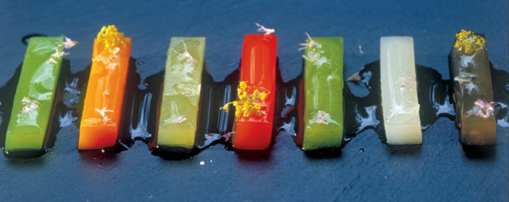 Hay que tener en cuenta que en el año 96 no se había desarrollado todavía la cocina de las texturas ni la de la química extrema. El Señor Sobrasada ya había jugueteado con los raviolis líquidos y las mousses saladas. Aquellos raviolis líquidos de maíz con cigalas, reducción de aceto y aceite de vainilla. O el ravioli de garbanzos con el jantreado de trompetas de la muerte. Y aquel tomate relleno de mousse de atún y su aceitito de albahaca. Pero las espumas no habían salido de Roses todavía. Recuerdo que mi padre, que viajaba a china desde principios de los años 80, me hablaba de unos platos de pescado con una especie de gelatina caliente. Los chinos ya nos habían dado a comer el Agar-agar en sus ensaladas chinas. Incluso en la escuela de cocina cuando estudiamos los gelificantes hablaban del Agar-agar pero no sabían usarlo ni sus propiedades. No fue hasta el año 2001 que El Bulli sacó su parrillada de verduras de gelatina caliente. Era el principio de la cocina química. Los cocineros con curiosidad imaginaban texturas y estructuras que fueran estables pero en la mayoría de los casos no fueron posibles hasta que llegó la química alimentaria a los restaurantes. A partir de 2003 El Bullí volcó toda su creatividad en explotar al máximo la química alimentaria reinventando técnicas como la esfericación que sacaron de un bote de huevas de Mujol ahumadas.