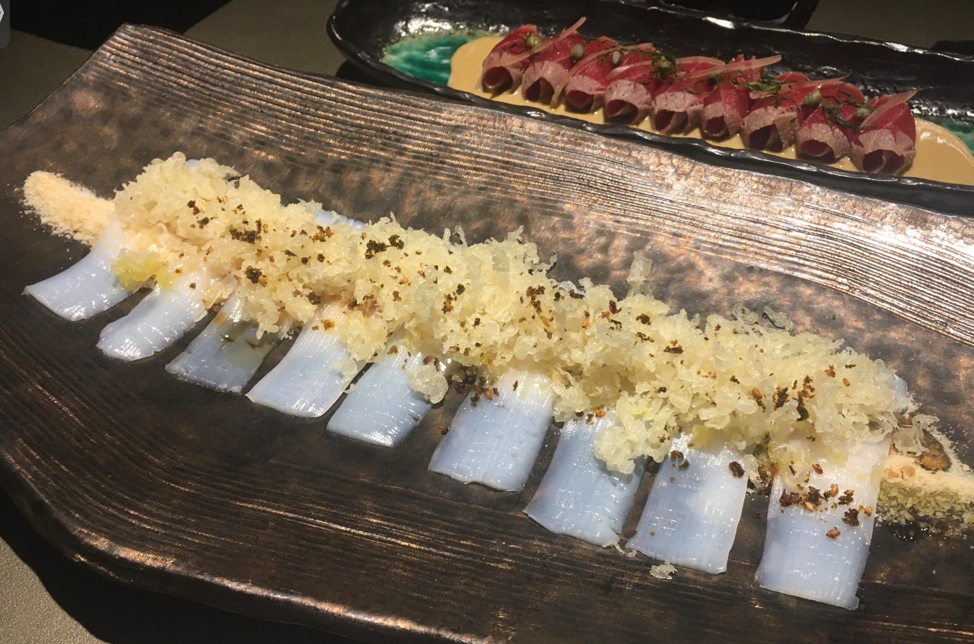 DEL CARPACCIO DE BACALAO AL USUZUKURI DE BOCATA DE CALAMARES.
